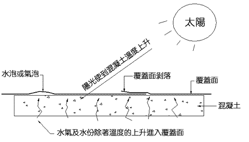 內 的 水 份 開 始 揮 發 , 形 成 一 度 推 動 力 , 把 內 外 牆 上 的 油 漆 、 磚 件 、 牆 紙 等 推 動,